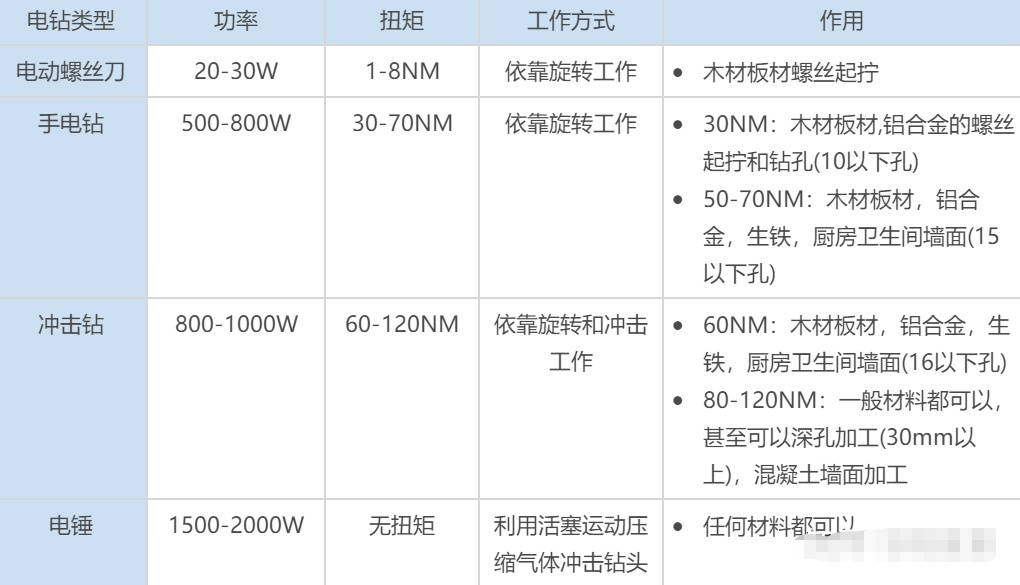 不要看购物平台上一搜出来成百上千的电钻,归根结底主要分4个大类:电动螺丝刀、手电钻、冲击钻、电锤。